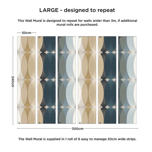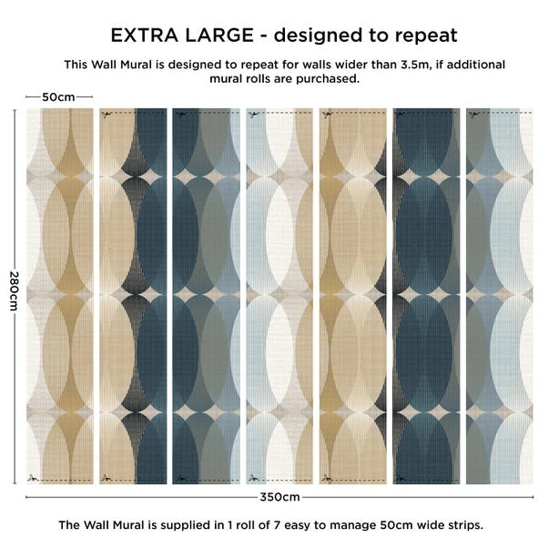 Bring a modern edge to your décor with this stylish wall mural. Decorated with a geometric oval design and completed in an on-trend ochre and teal colourway, this mural is perfect for bringing a contemporary touch to any room. Easily applied by pasting the wall, this mural is ideal for bringing colour to your home and easily coordinates with a wide range of decorative styles and colourways.