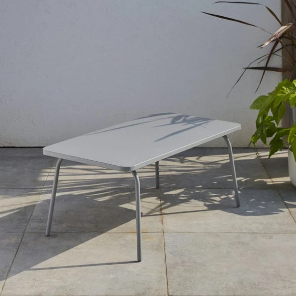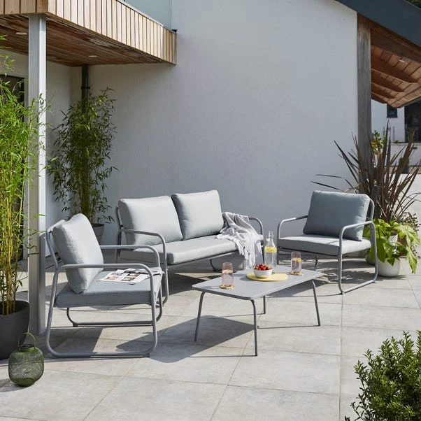 Enhance your outdoor lounge area with this fabulously sleek, conversation set comprising of an upholstered bench, two upholstered chairs and a steel plate table top. This set’s modern and sleek design is perfect for creating a contemporary feel in any garden. Crafted from premium materials, this set is built to withstand life against the elements in any garden.