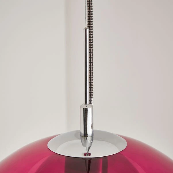 This pendant light features a beautiful glass shade paired with a polished chrome metal gimbal for a sleek, modern look. Available in multiple colourways, it adds a touch of elegance to any room.