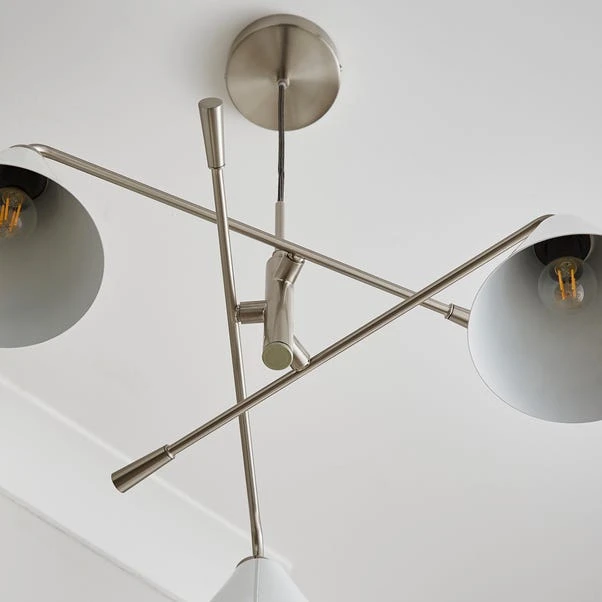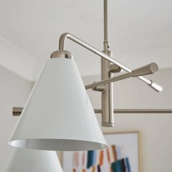 This ceiling light stands out with its unique and unusual design, featuring conical shades and adjustable heads – perfect for adding a modern touch to your space.